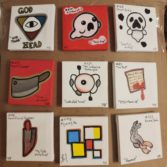 One-of-a-kind, hand painted pieces. Sizes and materials in description of each product.